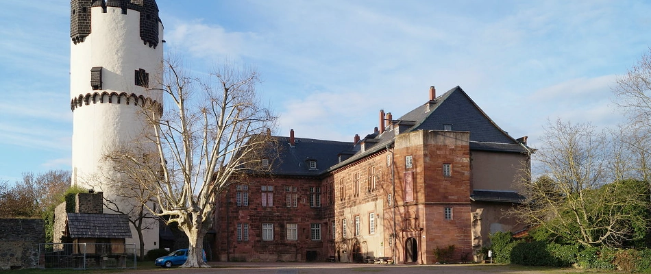 Bild: "Schloss Steinheim in Hanau-Steinheim, Ansicht von Hauptgebäude und Bergfried aus dem Schlosshof von Süden." by Lumpeseggl is licensed under CC BY-SA 3.0